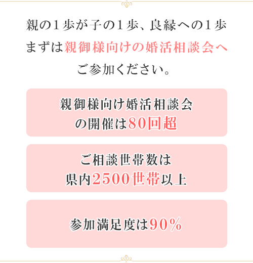 現代では「結婚できて当たり前」という時代ではなくなり、大変多くのご家庭が結婚に向け奮闘されておられます。個々の状況に違いはあるにせよ、やはり本気の親御さんは本気でわが子と向き合っておられると感じます。